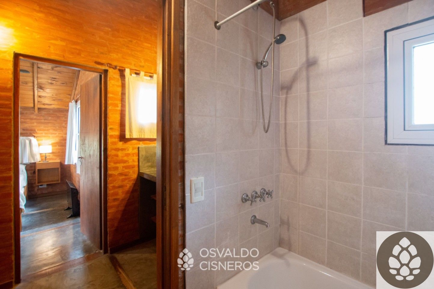 En la planta alta se ubica el dormitorio matrimonial, con ventilador y baño completo con bañera.
